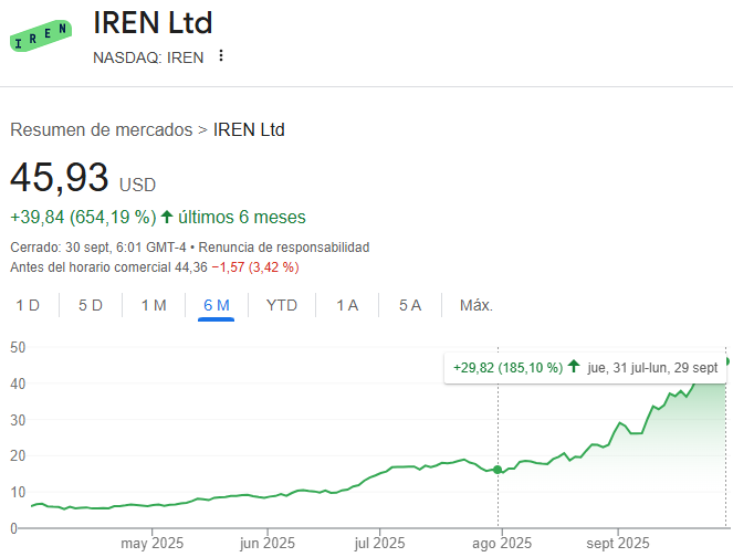 En la entrega del 30 de Julio ya te comenté que invertía en IREN.